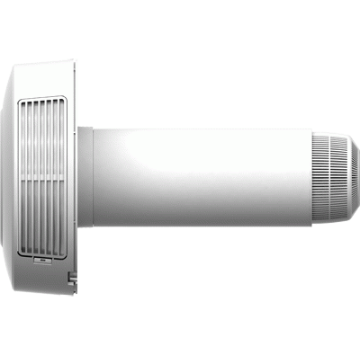 So với bộ trao đổi nhiệt, Flow2one không cần cấu tạo ống dẫn quy mô lớn. Hệ thống yêu cầu một lỗ có đường kính 11cm trên tường và không khí được trao đổi trực tiếp qua tường, quạt và bộ lọc.